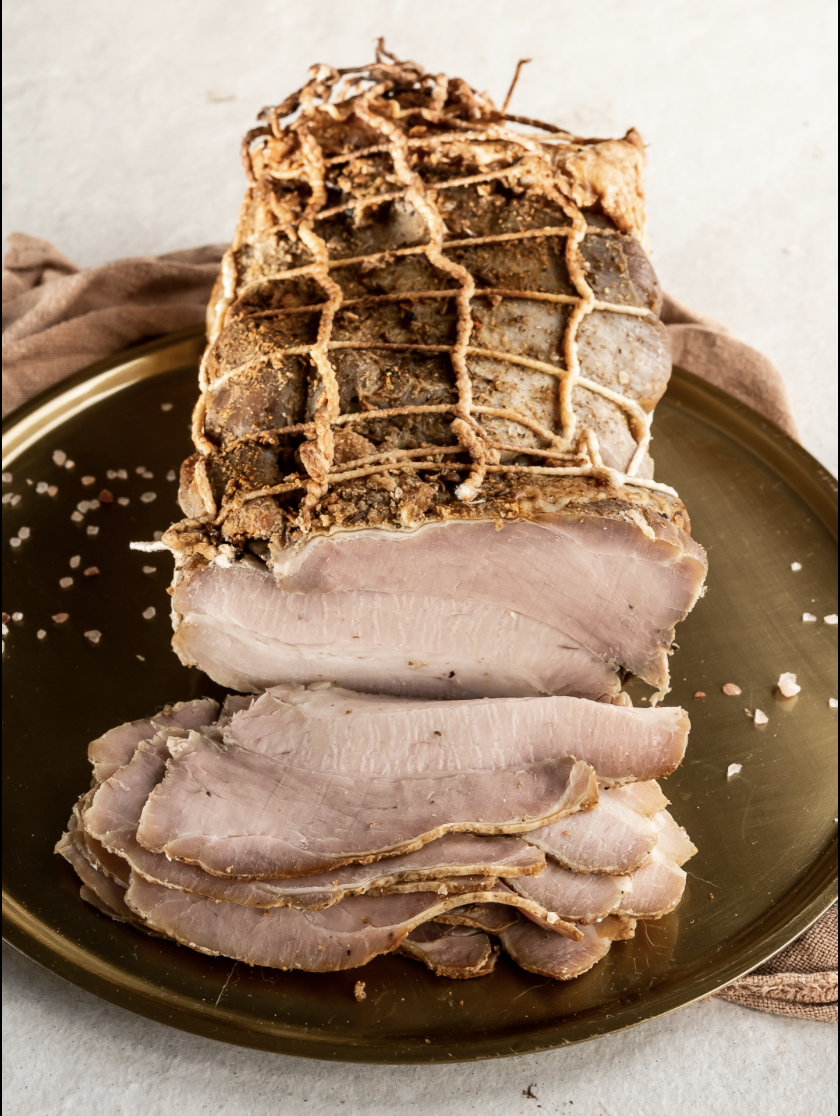 Aromatyczny boczek pieczony marki Lubinka, przygotowany według tradycyjnej receptury z wysokiej jakości mięsa. Charakteryzuje się soczystą strukturą, wyrazistym smakiem i delikatną nutą przypraw. Idealny na kanapki, do dań obiadowych lub jako element deski wędlin.