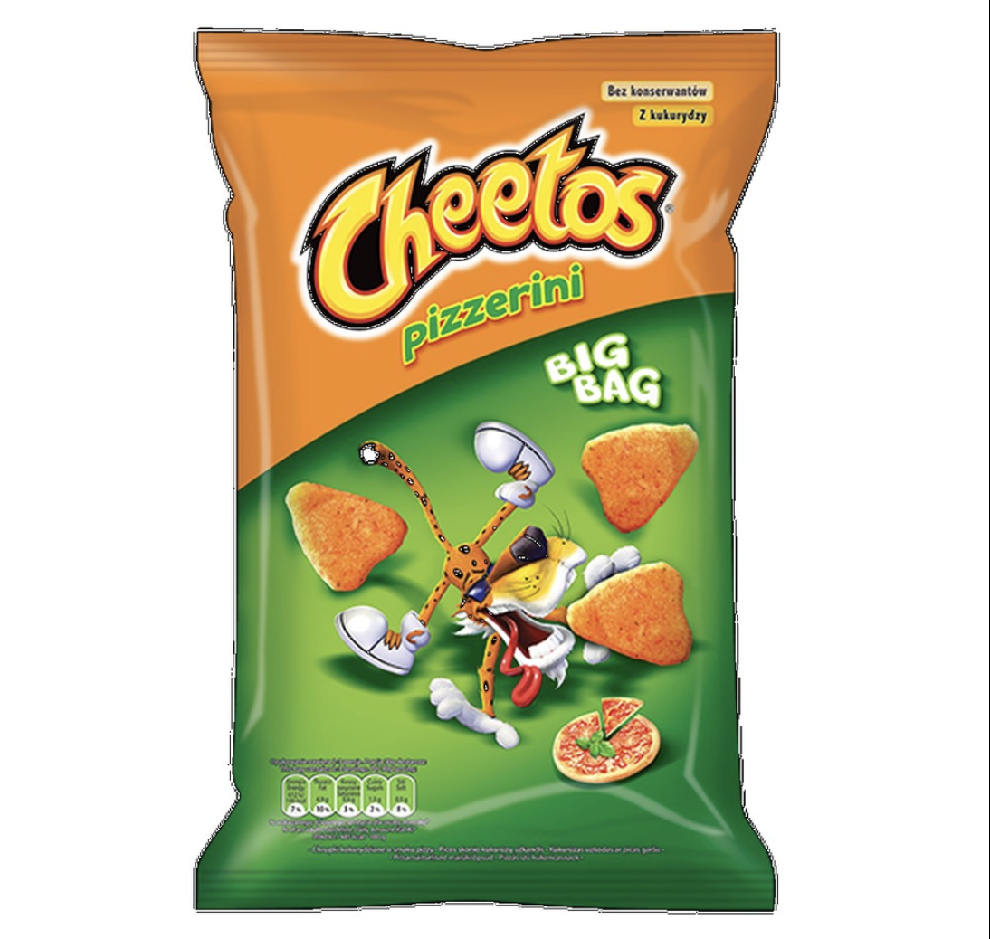 Chrupiące Cheetos o wyrazistym smaku pizzy – połączenie sera, pomidorów i aromatycznych przypraw w lekkiej, kukurydzianej formie. Idealne na szybki snack w ciągu dnia, do filmu lub na spotkanie ze znajomymi.