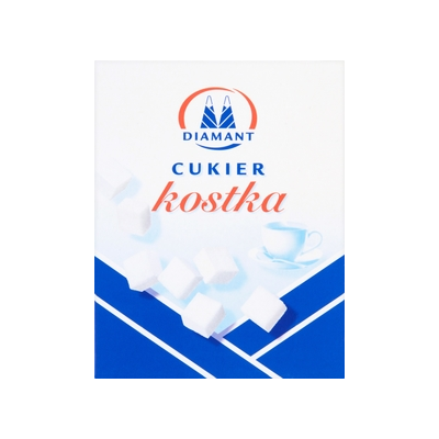 | Opis Dlugi | Cukier biały Diamant kostka to rafinowany i skrystalizowany cukier, który następnie jest zwilżany i prasowany w kostki. Wielkość kostki odpowiada standardowej łyżeczce sypkiego cukru. Cukier w kostkach stosowany jest do słodzenia gorących napojów. Doskonały na weekendowe i wakacyjne wyjazdy, spotkania towarzyskie lub biznesowe. Przeznaczony dla hoteli, restauracji i biur. Pakowany w zgrabne kartoniki o pojemności 500 kg (dostępna również gramatura 1 kg) |