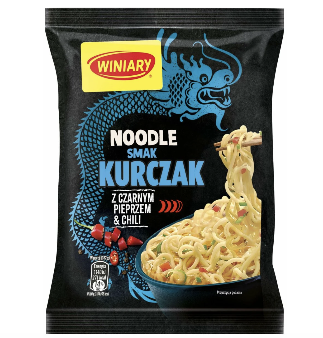 Danie Nudle kurczak 62 g Winiary to szybki i aromatyczny posiłek z makaronem o smaku kurczaka — gotowy do przygotowania w zaledwie kilka minut. Idealne rozwiązanie, gdy brak czasu na gotowanie, a chcesz ciepłego i sycącego dania. Świetnie sprawdza się w domu, w pracy lub jako szybki dodatek do lunchu.