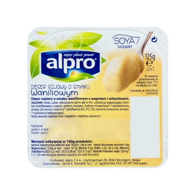 | Nazwa Produktu Uregulowana Prawnie | Deser sojowy o smaku waniliowym z wapniem i witaminami. UHT. |