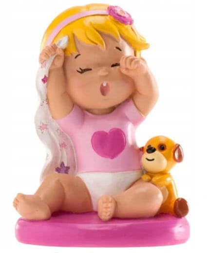 Fantastyczna figurka na tort z okazji chrztu lub Baby Shower Girl przedstawiająca ziewającą dziewczynkę. Świetna dekoracja wykonana z wysokiej jakości poliresinu oraz posiadająca podstawę z materiału dopuszczonego do kontaktu z żywnością. Po uroczystości może stanowić pamiątkę z tego wyjątkowego dnia. Figurka nie jest jadalna.