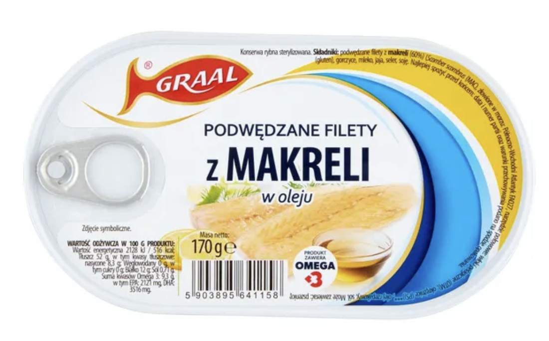 FILETY Z MAKRELI W OLEJU PODWĘDZANE 170G GRAAL