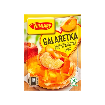 | Opis Dlugi | Królowa deserów z lodówki! To Galaretka o smaku brzoskwiniowym Winiary. Znakomicie smakuje i pachnie. Jest idealnym wyborem na deser, a dzięki temu, że wspaniale się prezentuje można nią finezyjnie dekorować ciasta oraz owocowe desery. A jeśli do galaretki dodasz ulubione owoce czy bitą śmietanę, uzyskasz niezwykle pyszne połączenie. Galaretka Winiary - zaproszenie do krainy deserów |