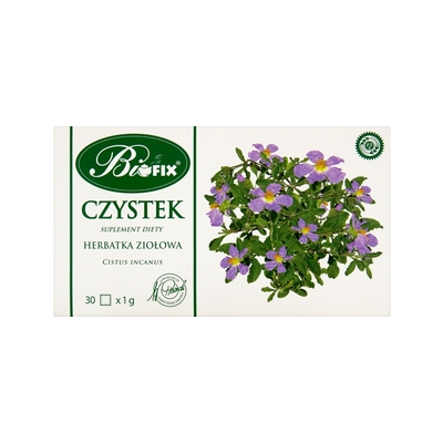 | Opis Dlugi | Czystek zawiera naturalnie występujące antydokstydanty, które pomagają chronić komórki przed szkodliwym działaniem wolnych rodników oraz wspierają nasz układ odpornościowy. Warunkiem zachowania właściwego stanu zdrowia jest stosowanie zróżnicowanej diety opartej na spożywaniu dużej ilości owoców, warzyw i produktów zbożowych oraz zdrowy tryb życia poparty ćwiczeniami fizycznymi i dużą ilością ruchu. |