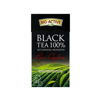 | Opis Dlugi | Znaleźliśmy wszystko, czego szukasz w prawdziwej czarnej herbacie: czyste i starannie wyselekcjonowane liście... i nic więcej. U nas każda herbata ma swój charakter. Odkryjesz go w intensywnej, lekko złocistej barwie naparu, harmonijnej kompozycji lekkiej nuty słodyczy ze zbalansowaną goryczką oraz esencjonalnym aromacie bez sztucznych dodatków. Big-Active kryje w sobie naturalną moc wysokiej jakości czarnej herbaty, pochodzącej z najsłynniejszych herbacianych ogrodów Cejlonu. Doskonałe warunki klimatyczne i oryginalne pakowanie herbat na miejscu są gwarancją najlepszego smaku, którym możesz delektować się, kiedy tylko masz na to ochotę. |