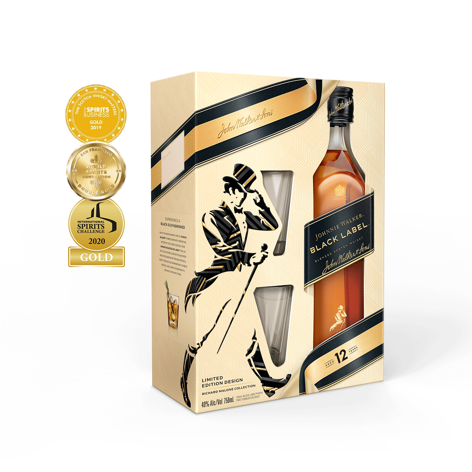 JOHNNIE WALKER BLACK 40% 0,7L +2SZKL