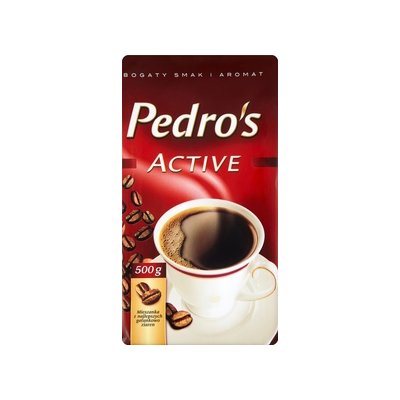 | Opis Dlugi | Kawa Naturalna Mielona W dążeniu do doskonałości pomogli nam polscy konsumenci - mieszanka Pedro's Active została wybrana w ogólnopolskim teście smaku. Pedro's Active kawa mielona doskonała do tradycyjnego sposobu parzenia jak i do ekspresu. Chcesz tak wiele zrobić... Czujesz, że potrzebna Ci będzie dodatkowa porcja energii... To moment na filiżankę kawy Pedro's Active. Pobudza przyjemnym aromatem i daje siłę do realizacji wszystkich planów. Pozytywna energia i bogaty wyrazisty smak. To kawa dla aktywnych. Pedro's Active zawdzięcza swój wyrazisty smak najlepszym gatunkowo ziarnom kawy, które nasi specjaliści poddają starannemu procesowi palenia, wydobywając z nich to co najlepsze. |