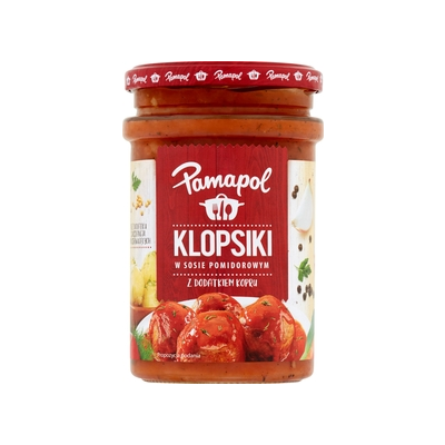 | Nazwa Produktu Uregulowana Prawnie | Klopsiki z mięsa oddzielonego mechanicznie z kurczaka i mięsa wieprzowego w sosie pomidorowym z warzywami. Produkt sterylizowany. |