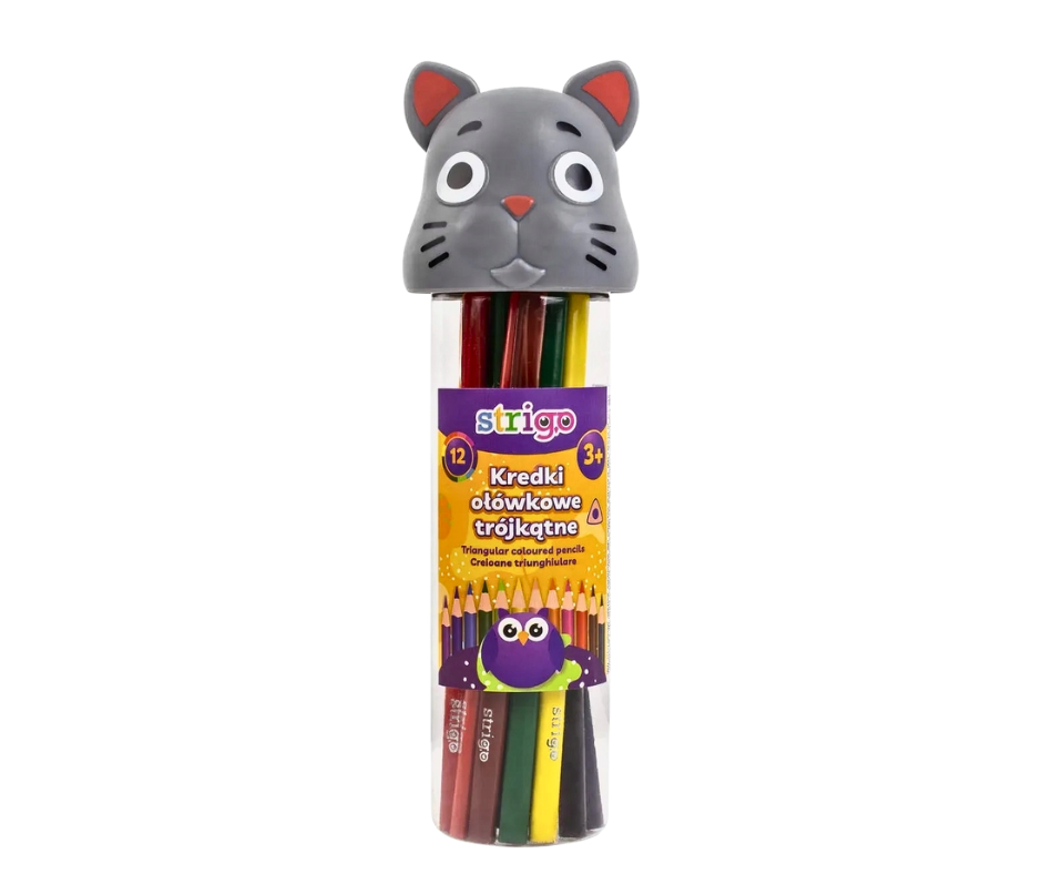 Kolorowe, poręczne i idealne dla dzieci — kredki ołówkowe Strigo „Kotek” to zestaw 12 intensywnych barw zamkniętych w urocznym opakowaniu z kociakiem. Kredki są miękkie w rysowaniu, dobrze się temperują i pozwalają na tworzenie wyrazistych rysunków. Doskonałe do szkoły, przedszkola i domowych prac plastycznych.
