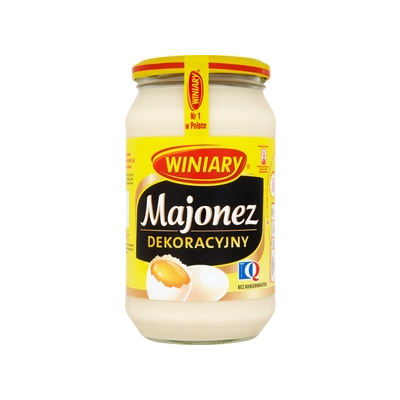 | Opis Dlugi | Majonez Dekoracyjny Winiary to gęsty, kremowy majonez, o doskonałej jakości i wyjątkowym smaku. Smak i kremowa konsystencja niezmienne od lat dzięki tradycyjnej recepturze i stałej trosce o najwyższej jakości składniki sprawiają że należy do najchętniej kupowanych produktów w Polsce. Majonez Dekoracyjny podkreśla i urozmaica smak potraw i jest doskonałym dodatkiem do jajek, sałatek, zimnych przystawek. Zainspiruj się smakiem Majonezu Dekoracyjnego! Majonez Dekoracyjny Winiary: - podkreśla i urozmaica smak codziennych potraw - bez sztucznych aromatów, bez barwników, bez dodatku konserwantów - dostępny w słoiku o różnej pojemności oraz w wygodnej plastikowej butelce |