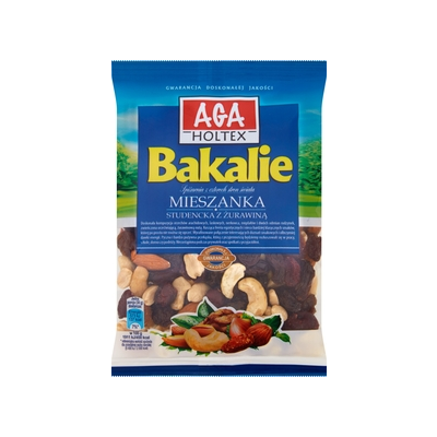 | O Producencie | Spiżarnia z czterech stron świata Bakalie Aga-Holtex są wyśmienitą przekąską oraz wspaniałym dodatkiem do wielu potraw, czyniąc wyjątkową każdą z nich. Dekoracje wykonane z naszych bakalii mogą stać się istnym arcydziełem. Najcudowniejszy jest jednak ich smak, którym natura tak szczodrze je obdarowała. |