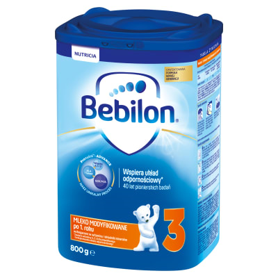 | Opis Dlugi | Opatentowana formuła nowej generacji Jedyna taka formuła łącząca naszą wyjątkową kompozycję składników z naszym unikalnym procesem, aby stworzyć mleko dla dzieci po 1. roku życia Bebilon 3. - ALA (Omega 3) dla prawidłowego rozwoju mózgu i tkanek nerwowych**. - Unikalna kompozycja oligosacharydów GOS/FOS odwzorowuje kompozycję oligosacharydów mleka matki. - Niezbędne witaminy i składniki mineralne w odpowiednich ilościach, w tym: - C i D* dla prawidłowego funkcjonowania układu odpornościowego, - jod i żelazo* dla prawidłowego rozwoju poznawczego, - wapń dla mocnych kości. - HMO 3'GL: Oligosacharyd mleka kobiecego 3'GL naturalnie występuje w mleku matki. 3'GL pochodzi z naszego unikalnego procesu. *Zawiera jod i żelazo dla prawidłowego rozwoju poznawczego oraz witaminy C i D dla prawidłowego funkcjonowania układu odpornościowego. **dla porcji 200 ml Czy wiesz, że... układ odpornościowy rozwija się niezwykle intensywnie w ciągu pierwszych 3 lat życia? Wspieraj układ odpornościowy swojego dziecka od niemowlaka do przedszkolaka, aby mogło doświadczać świata w pełni. Bebilon 3 jak mleka modyfikowane dla małych dzieci zawiera witaminy C, D oraz wapń, jod, żelazo i kwas ALA. |