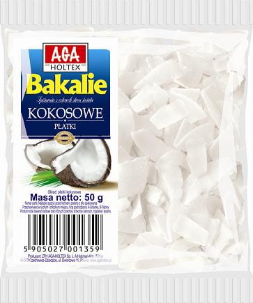 Lekkie płatki kokosowe powstają z miąższu orzecha kokosowego. Białe, delikatne płatki mają oryginalny smak i aromat, ktory nadaje potrawom oryginalnego charakteru. Płatki kokosowe doskonale sprawdzą się także jako egzotyczny dodatek do deserów, wzbogacając ich smak i wygląd.