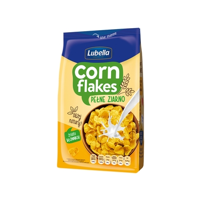 | Opis Dlugi | Dzień dobry Wiemy, że starasz się zdrowo odżywiać. Wiemy też, że czasem to nie takie proste... Ale to właśnie małe kroki prowadzą do wielkich zmian. Jeden z nich to wprowadzenie do diety naturalnego błonnika, który znajdziesz w naszych płatkach Lubella Corn Flakes Pełne ziarno. Genialnie proste! Dlaczego pełne ziarno? Bo zawiera cenne składniki: - Źródło błonnika - 23%* fosforu - 21%* manganu - 15%* magnezu * % referencyjnej wartości spożycia |