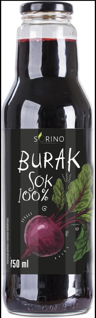 Naturalny sok z buraków marki Sorino, wyprodukowany w 100% z buraków (odtworzony z zagęszczonego soku). Charakteryzuje się intensywnym, lekko słodkim smakiem i naturalnym aromatem. Może być spożywany samodzielnie lub jako dodatek do koktajli i napojów.